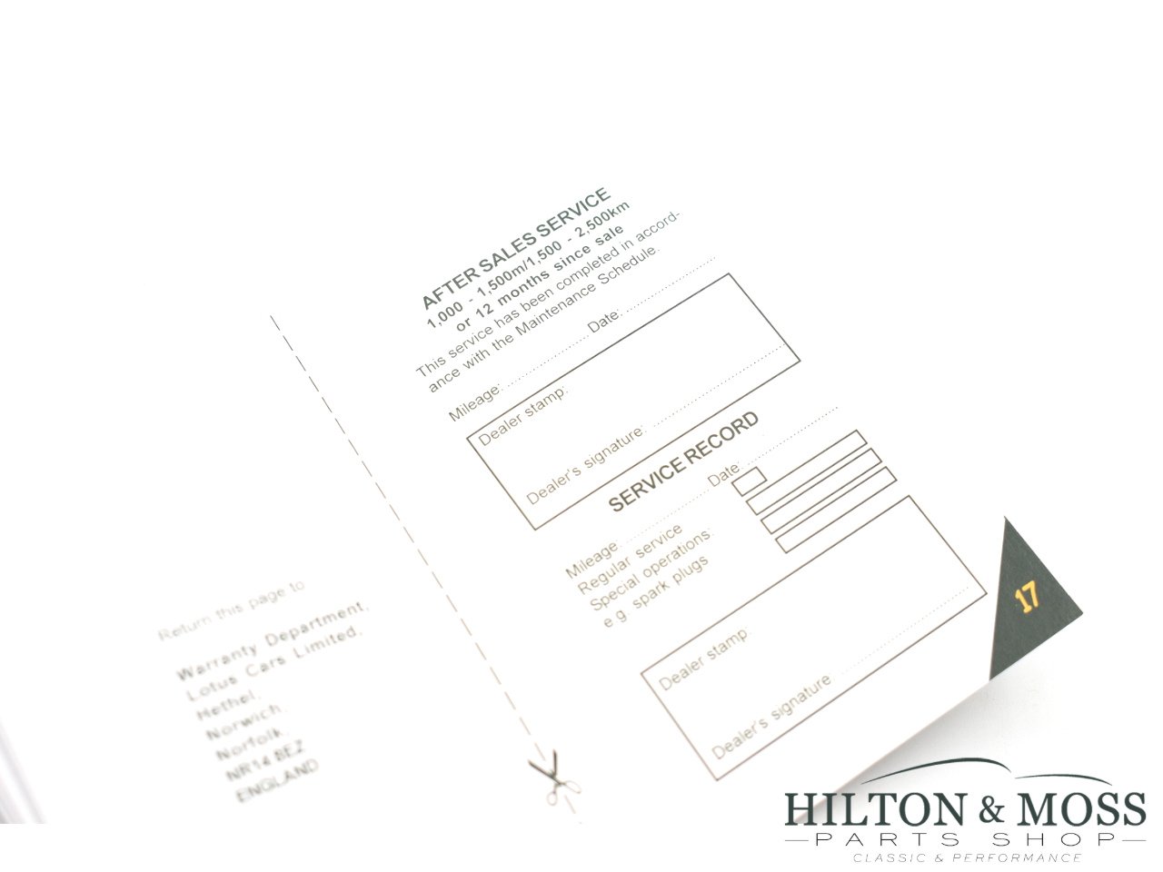 Elise / Exige S2 green service/maintenance book
