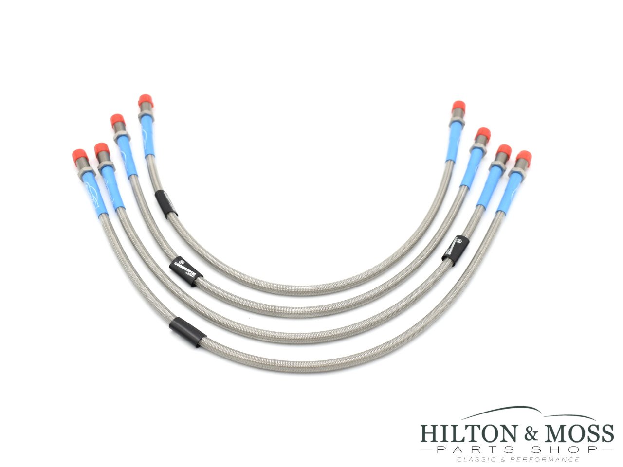 Goodridge stainless steel brake hose set(for cars with ABS). To fit all Toyota engined Lotus Elise Series 2 / Series 3 & Exige Series 2 models. K-Series cars require one shorter hose on the driver’s side – please enquire if you need this set. An excellent and relatively cheap upgrade to the standard braking system on a Lotus Elise, preventing the expansion of the line and loss of braking performance and feel that is experienced with the standard lines under hard use.