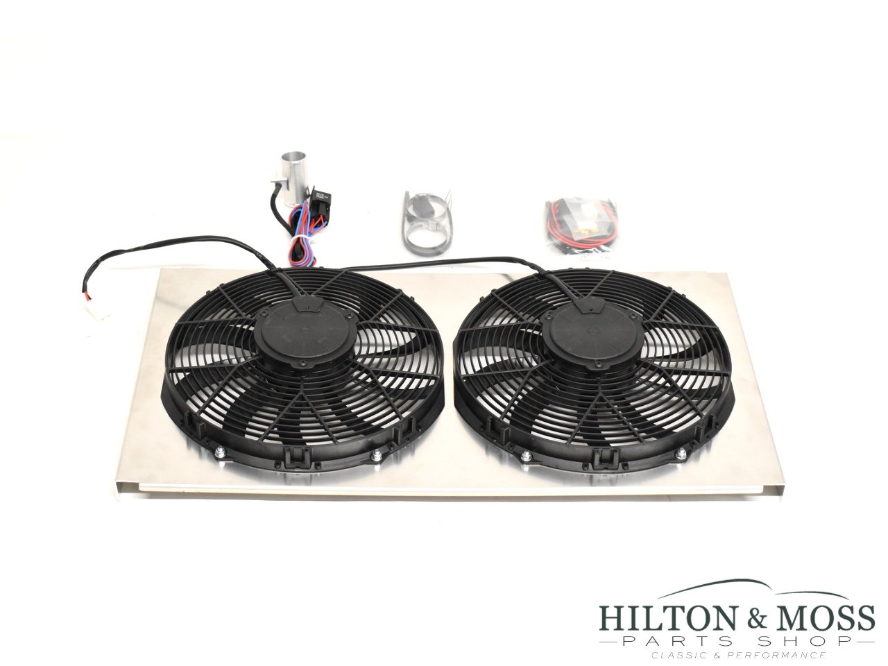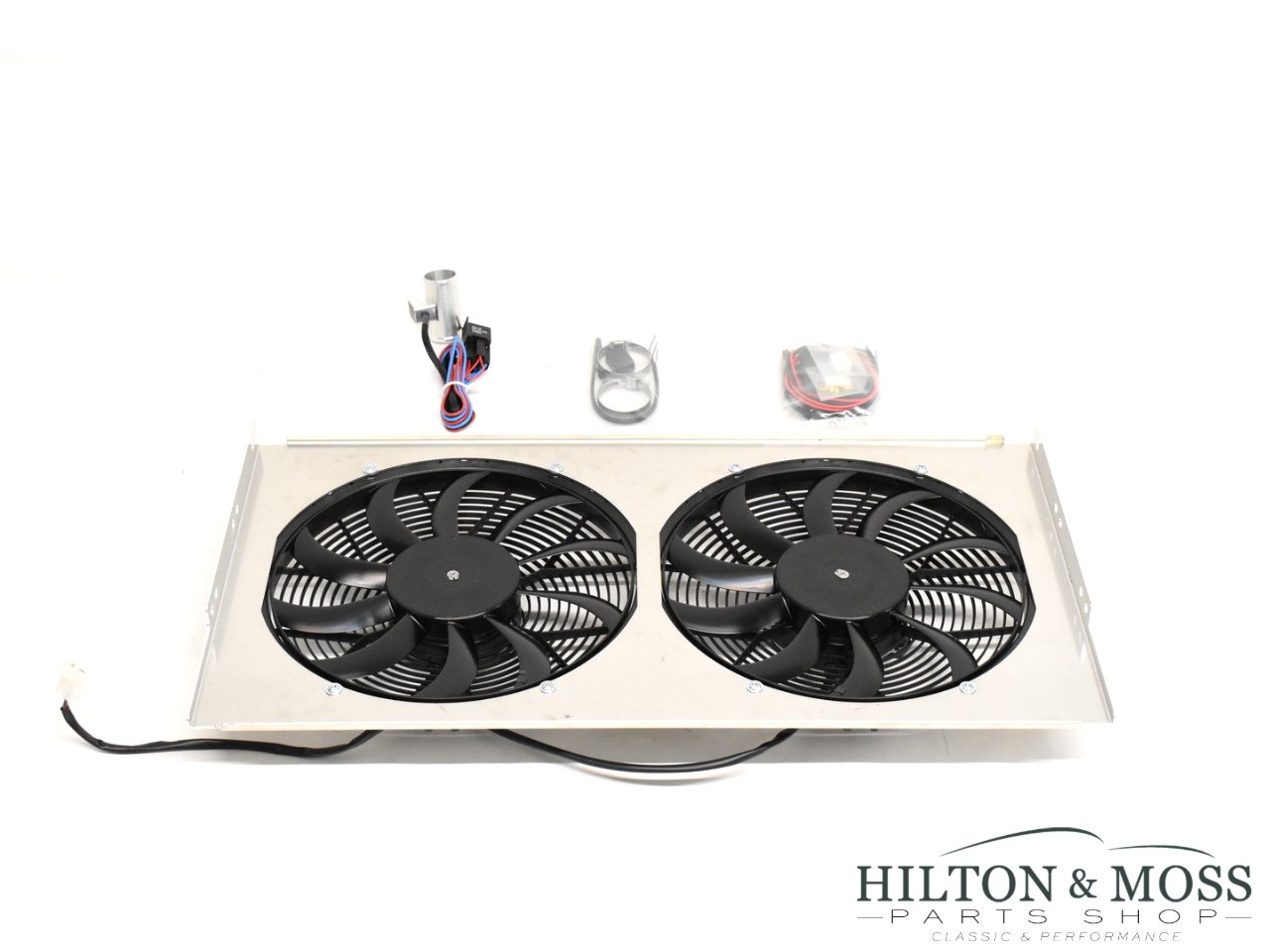 Jaguar E-Type S3 V12 Cooling Fan Kit Upgrade. Radiator cooling fan upgrade kit – Contains Revotec electronic fan controller, 2 x 12″ COMEX high power, slimline and waterproof suction fans and an aluminium mounting plate / shroud.